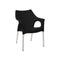Esta silla, con su estructura resistente y patas de aluminio, se adapta a una amplia variedad de entornos, tanto en interiores como en exteriores. Su color negro elegante y diseño ergonómico aseguran comodidad y estilo en cualquier ambiente donde se utilice.
