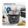 Incluye una vaporera que permite cocinar vegetales, pescado y otros alimentos al vapor mientras el arroz se prepara, logrando comidas completas de forma simultánea.