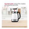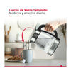 El hervidor integra una base moderna giratoria de 360°, permitiendo un mejor desplazamiento al extraer el hervidor. Adicionalmente, incluye filtro para pequeñas partículas.