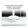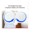 La enceradora, pulidora mopa húmeda y seca inalámbrica, cuenta con la tecnología Dual Spin, ya que permite una limpieza rápida y sin esfuerzo debido a que sus paños a 230 RPM.